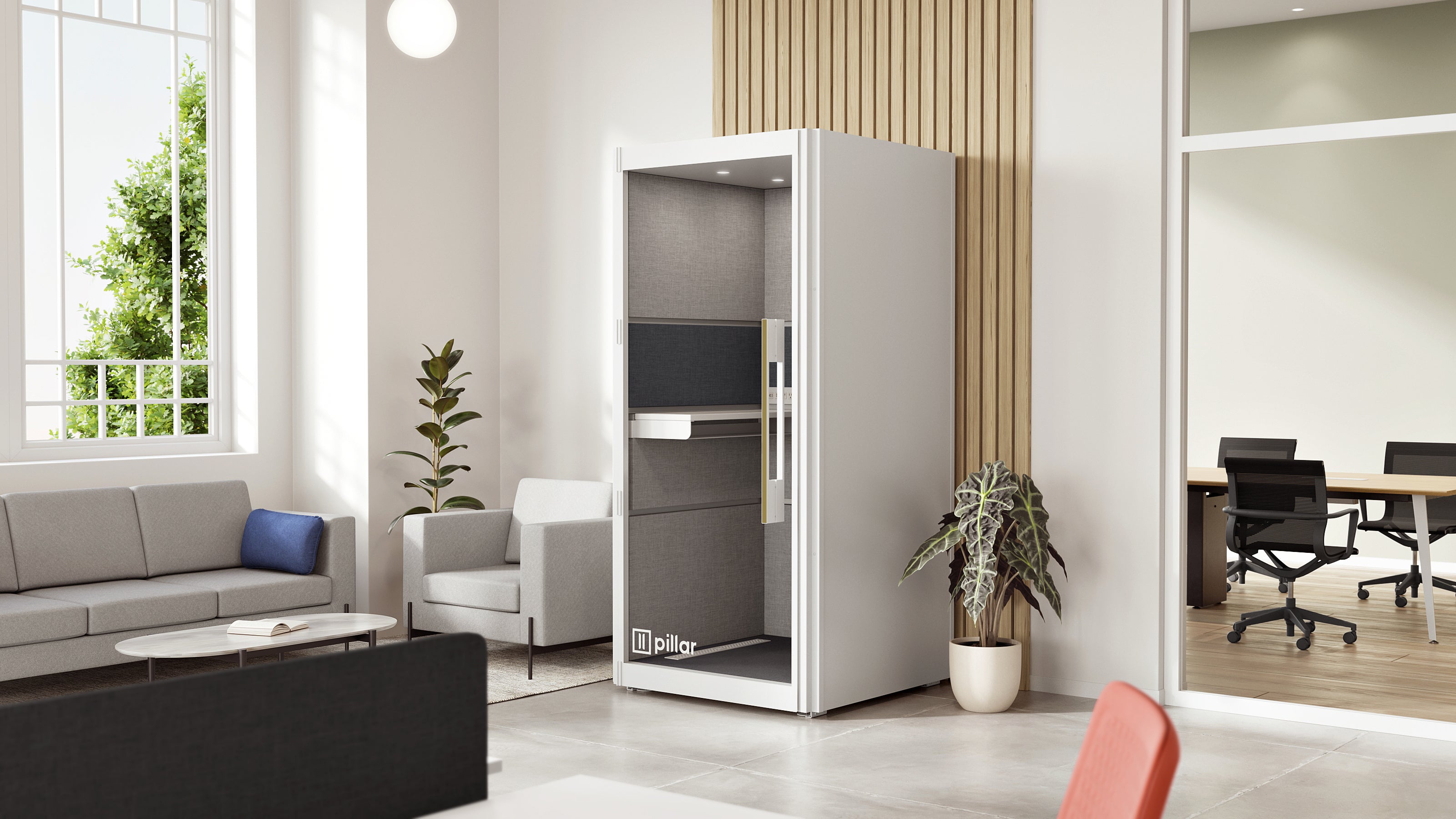 Featuring a swing door with latch and no closer, the Pillar Booth ADA offers a spacious interior clearance of 42.1” deep and a 24.3” wide clearance to the right of the door latch, ensuring unhindered movement within the booth.